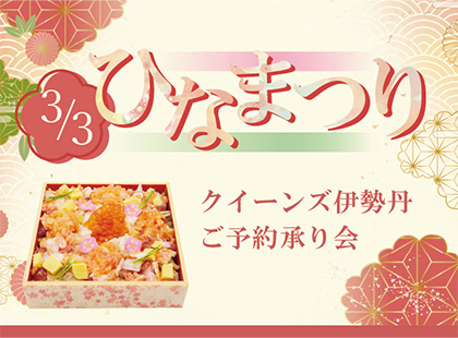 3月3日は桃の節句。 お祝いにぴったりなオードブルやお寿司など、おうちでひなまつりを楽しめる商品をご予約承り中!