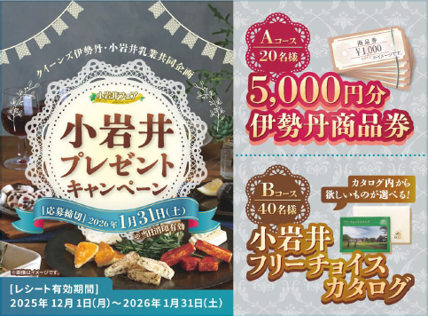 応募すると【商品券】や【小岩井フリーチョイスカタログ】が当たる!