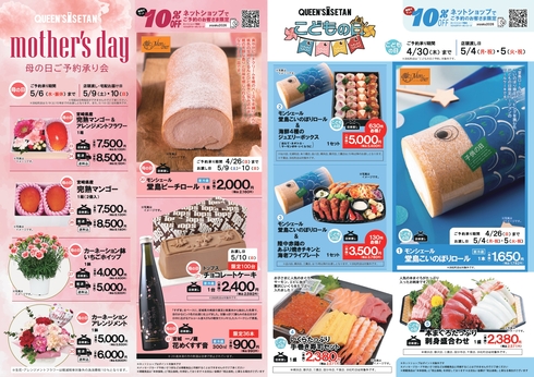 ※亀戸店、大宮店、中野店、浜松町店は対象外です。 ※店舗により、お取り扱い商品が異なります。詳しくはネットショップをご覧ください。 ※「モンシェール 堂島こいのぼりロール」は4月26日(日)までの承りです。