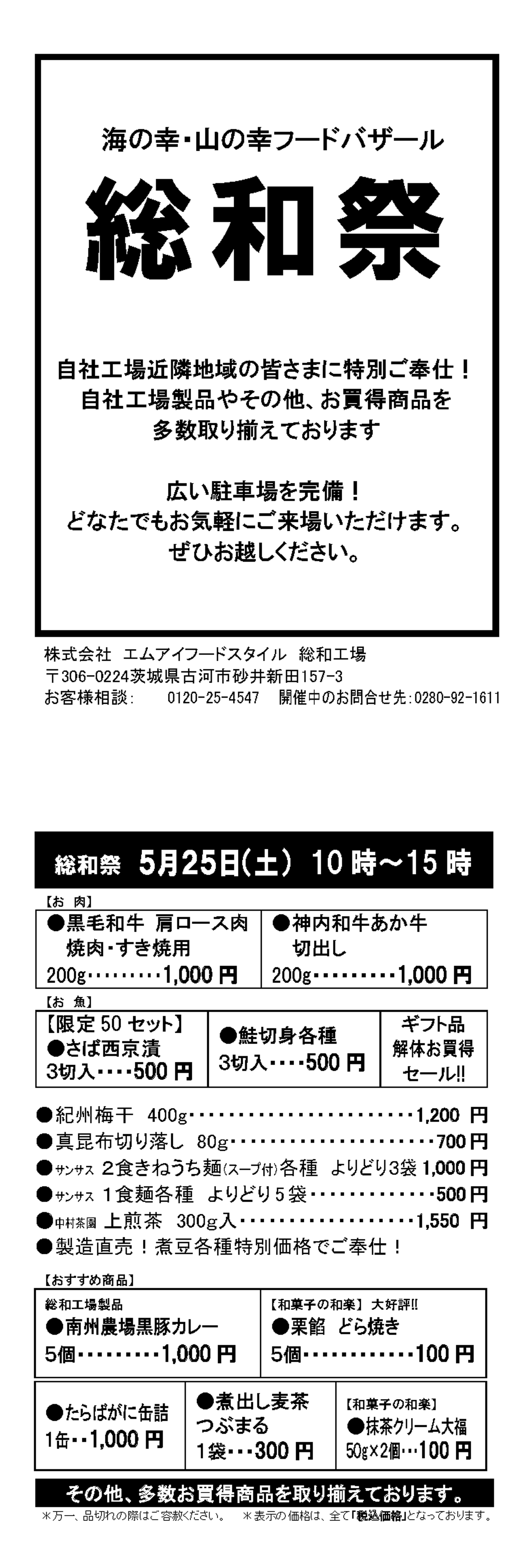 5月25日(土)総和工場にてフードバザール総和祭を開催いたします!